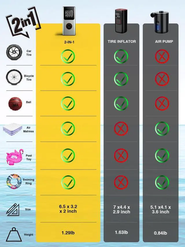 A portable electric air pump is a versatile and convenient device designed to quickly inflate various items such as inflatable mattresses, airbeds, pool toys, sports equipment, inflatable boats, cars,motorcycles and bicycles.