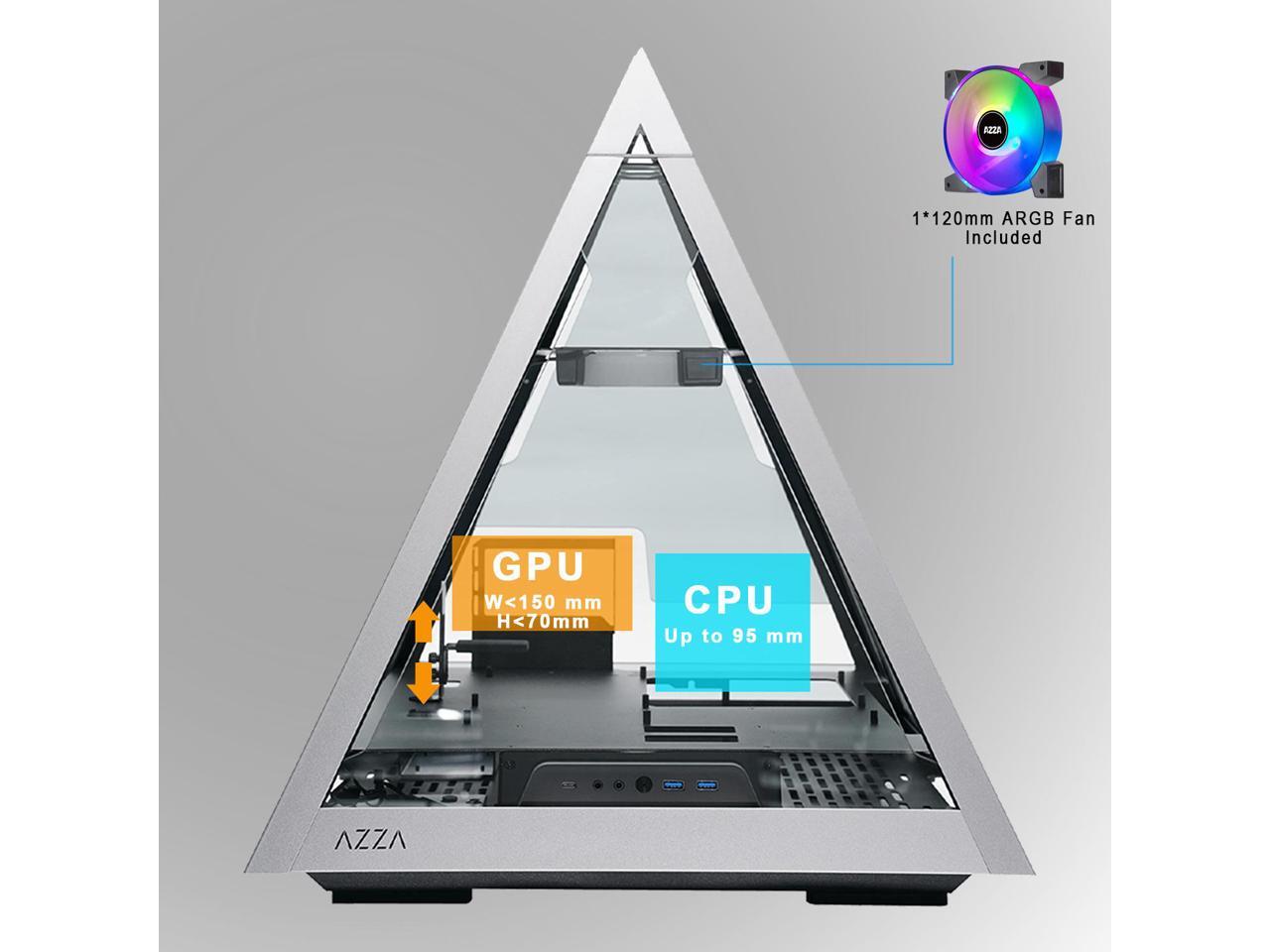 AZZA PYRAMID 804L / PCIE 4.0 included / Gaming / CNC ATX Case /Tempered Glass / Aluminum Frame / Type-C Port /1x120mm ARGB fan included