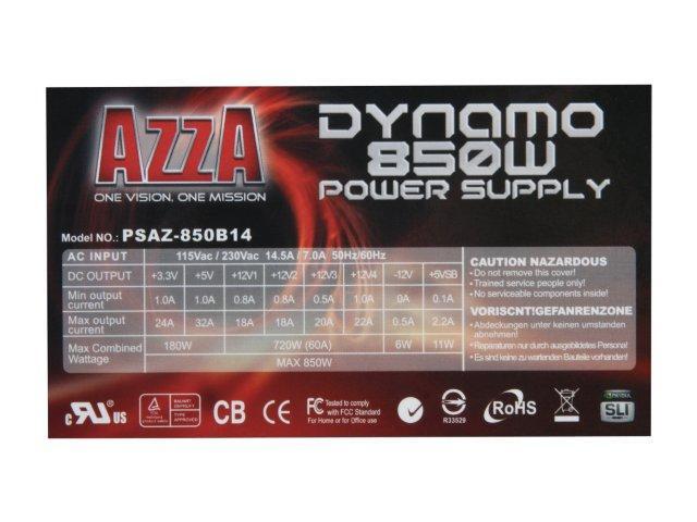 AZZA Dynamo 850 850 W ATX & EPS 12V 2.91 SLI Ready CrossFire Ready Power Supply