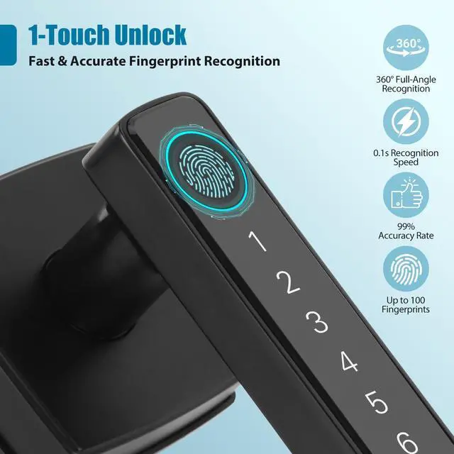 4-in-1 Keyless Entry Convenience Enjoy the ultimate flexibility with our smart door lock. Unlock your door using your unique fingerprint, a personalized code via the backlit keypad, remotely through the Tuya Smart App, or with the included physical keys as a reliable backup. This keyless entry door knob eliminates the hassle of carrying keys, making it perfect for your home, apartment, bedroom, or office.