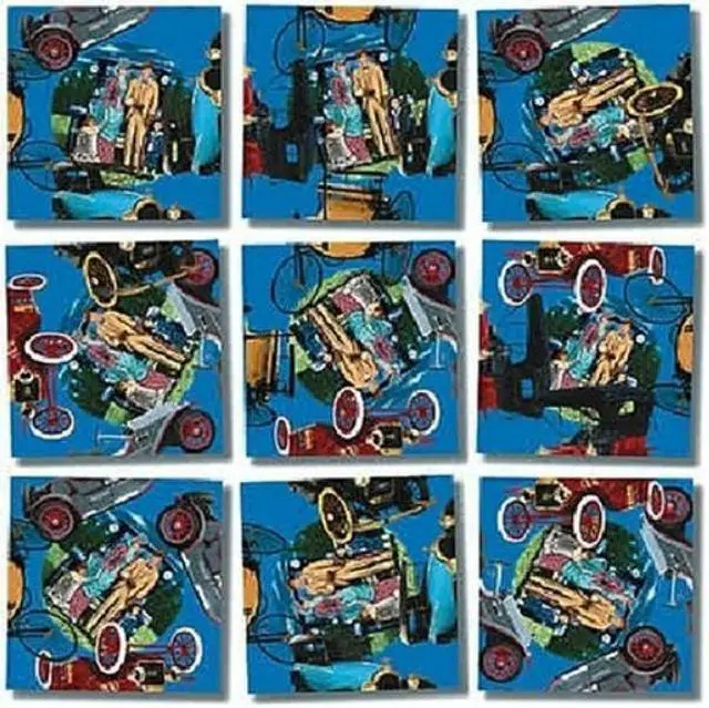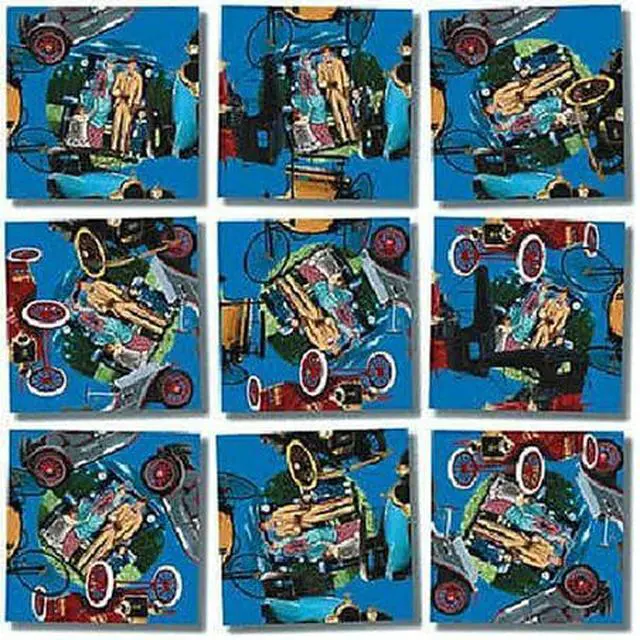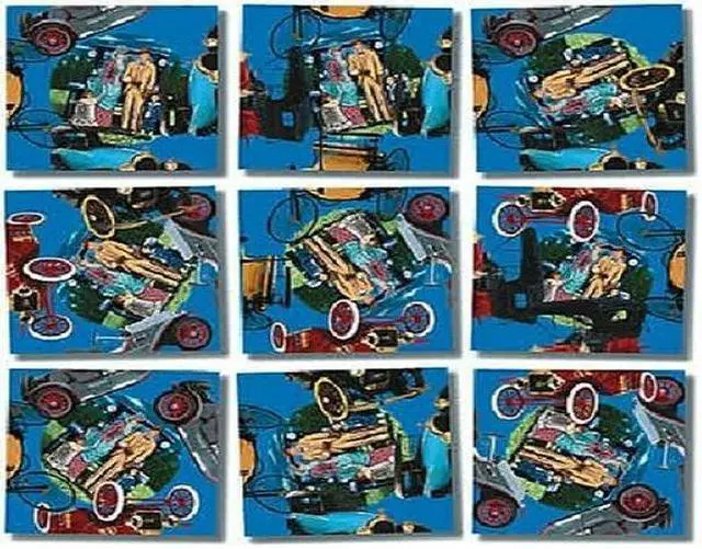 The object of the Scramble Squares puzzle game is to arrange the 9 colorfully illustrated square pieces into a 12" x 12" square so that the realistic graphics on the pieces' edges match perfectly to form a completed design in every direction.
