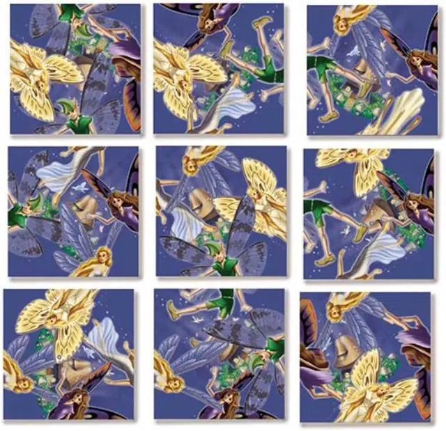 The object of the Scramble Squares puzzle game is to arrange the 9 colorfully illustrated square pieces into a 12" x 12" square so that the realistic graphics on the pieces' edges match perfectly to form a completed design in every direction.
