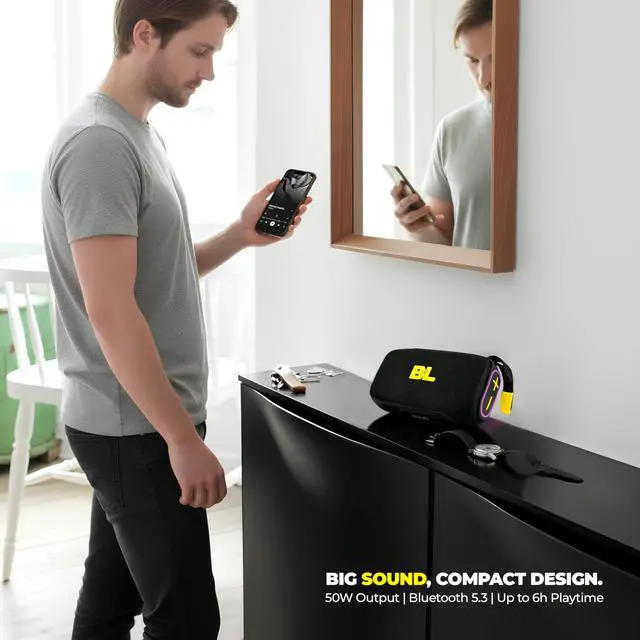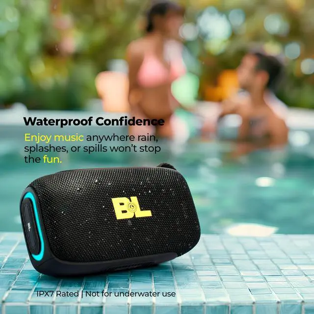 "Turn every moment into a stage. This waterproof bluetooth speaker brings bold 30W sound and deep bass to showers, beaches, campsites, dorms, and backyard cookouts. Engineered for adventure with IPX7 protection, long battery life, and a compact body that slips into any bag, your soundtrack follows you everywhere. Stereo note: true left-right stereo is achieved when two of our speakers are paired together via TWS; a single speaker plays in mono for maximum clarity and loudness. Loud and clear: balanced drivers and super woofer deliver room-filling power with crisp highs and punchy lows for movies, parties, and road trips. True outdoor ready: IPX7 means rain, splashes, and puddles are no problemperfect as a shower speaker or poolside companion. All-day playtime: up to 25 hours on one charge keeps music going from sunrise hikes to sunset fires. Connect your way: Bluetooth 5.3 plus AUX, USB, and TF card options. Party lighting: multicolor LEDs pulse to the beat. Gift it. Love it. Use it everywhere. A thoughtful holiday gift, a fun stocking stuffer, and a reliable travel companion for teens, men, and women. Use it as desktop speakers for laptop or monitor, link two units for stereo with your projector for outdoor movie night, or drop one by the shower for your morning playlist. From beach essentials to dorm must-haves, this portable bluetooth speaker fits every plan. Why it wins: immersive presence, rugged fabric wrap, grippy strap for bikes and backpacks, simple controls you can press with wet hands, and rapid Type-C charging. Pro tip: pair two speakers to unlock spacious stereo separation for a bigger backyard or patio. Ready to press play on better memories? bring big sound, bright lights, and worry-free durability to every day."