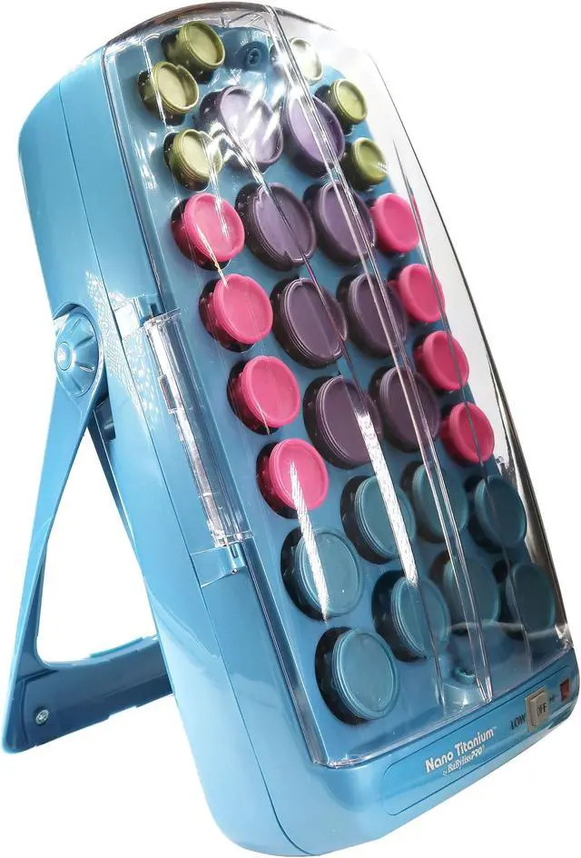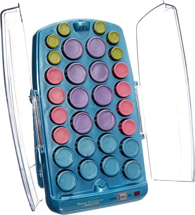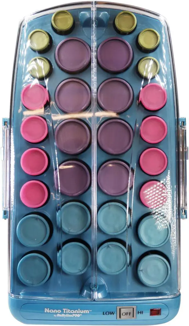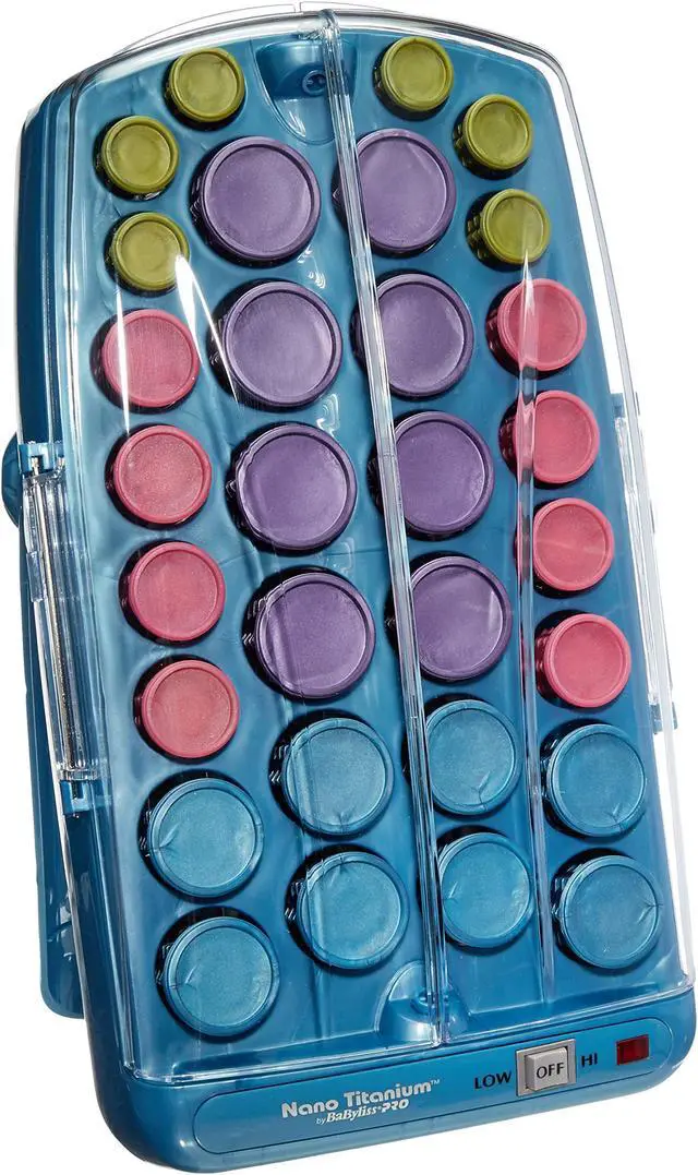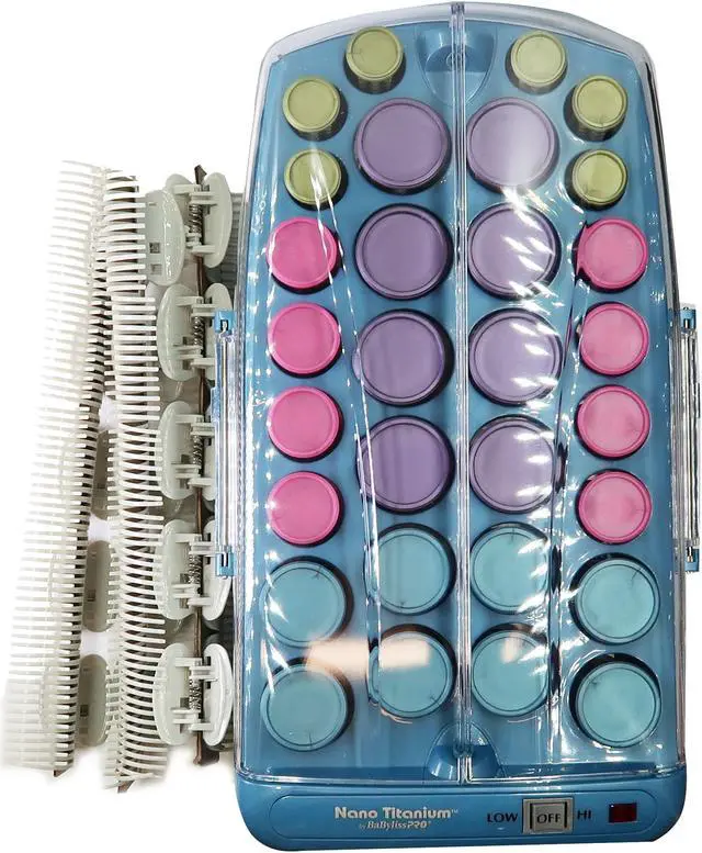 Set beautiful bouncy curls that are simply irresistible to touch with the BaBylissPRO Nano Titanium Professional Ionic Hairsetter. It contains 30 nano titanium ceramic rollers that come in four different sizes ranging from small to jumbo. It also contains fifteen butterfly clips and a handy storage pouch to keep the items together and prevent them from getting lost. The BaByliss hair setter, 45-piece, generates far-infrared heat to eliminate hot spots that damage hair and prevent it from looking strong, healthy, and radiant. Millions of negative ions are emitted from the dual ionic ports in order to reduce frizz and keep your hair looking its best. The professional hair setter has a folding arm so that the unit can be stored vertically to conserve much-needed counter space. Create very different yet equally alluring looks when you try styling your hair. The BaBylissPRO Nano Titanium Professional Ionic Hairsetter is a conveniently handy tool.
