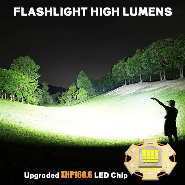 2024 New Upgraded XHP160.6 LED Rechargeable Flashlight 1500000 High Lumens