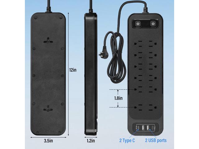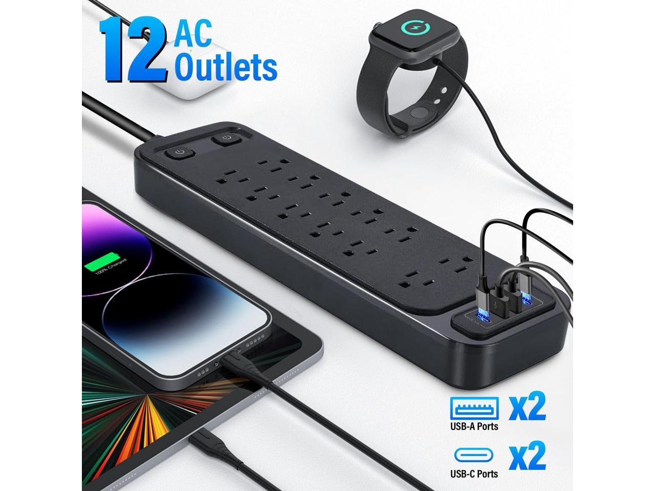 12 Outlets Power Strip with 4 USB Ports: The power strips with 12AC widely outlets and 4 USB charging ports and two independent switches, each USB port features 5V/3.1A Max output, can power up to 12 devices simultaneously. Wide range voltage design, can be used on 110v to 125v circuit
