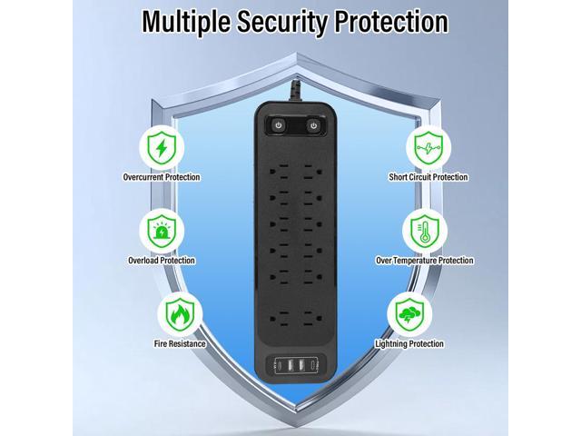Power Strip with USB Ports: Power strips with surge protector(2700 Joules), desktop multicontact power strips is made of environmental protection,it will automatically reduce power to protect connected devices when a voltage surge is detected