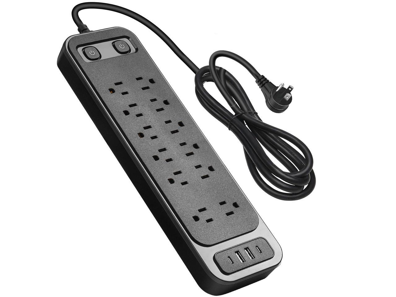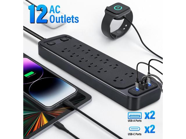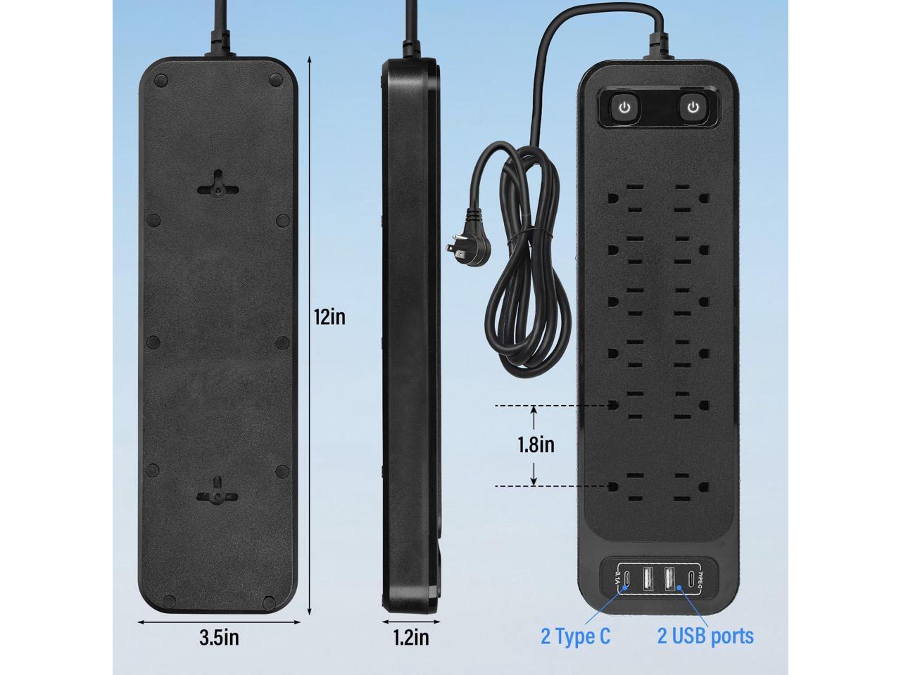 High Performance Power Strip with Surge Protector, Extension Cord with Multiple Outlets, 12 Outlets 4 USB Ports(2 USB-C) 6 Ft for Home Office, two independent switches Surge Protector Power Strip