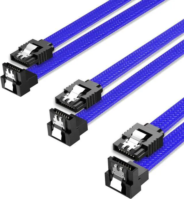 Bailink High Performance Nylon Braided SATA III Cable Right Angle 90 Degree for HDD/SSD/CD Driver/CD Writer ( Blue - 3 Pack )