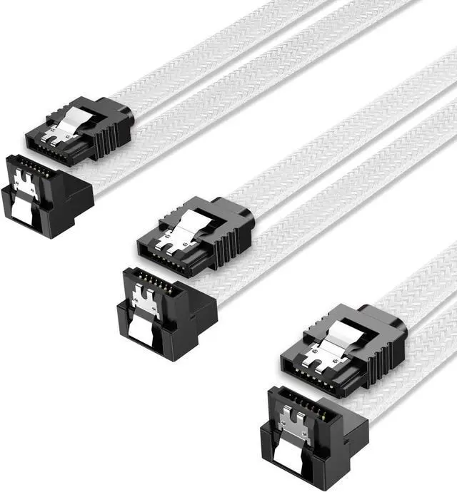 Bailink High Performance Nylon Braided SATA III Cable Right Angle 90 Degree for HDD/SSD/CD Driver/CD Writer ( White - 3 Pack )