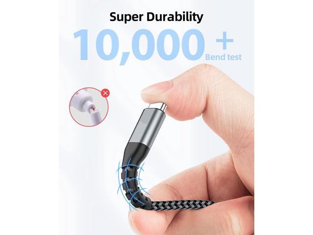 - Enhanced Durability: Strong fiber, the most flexible, powerful and strong material, makes tensile force increased by 200%. Can bear 10000+ bending test. Premium Aluminum housing makes the cable more strong,nylon braided type c cable adds additional durability and tangle free.