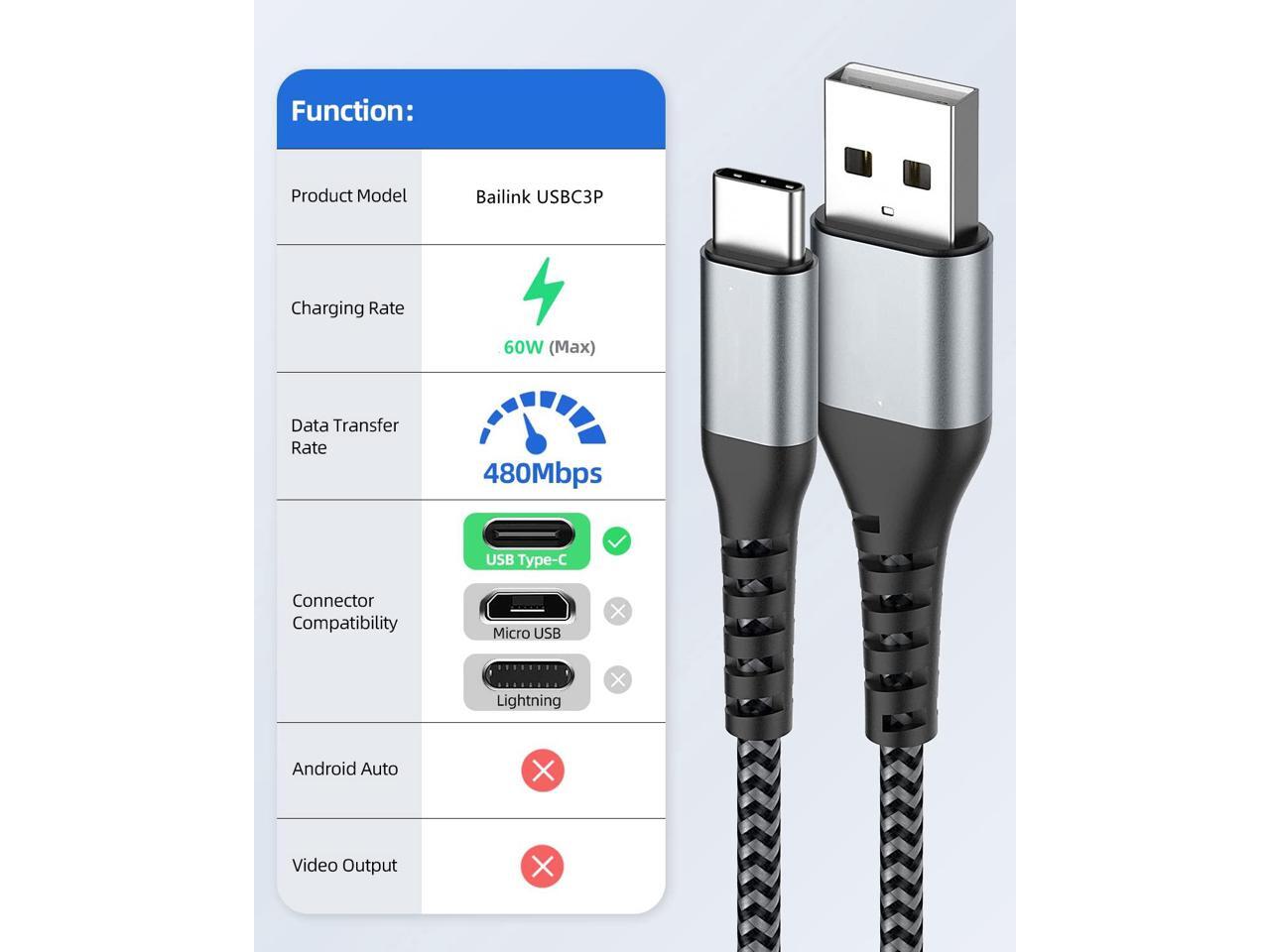 - Fast Charging and Sync: 3A Fast Charge, Transfer speed up to 480Mbps, Bailink USB C Cable 25% faster compared with other cables which provide.
