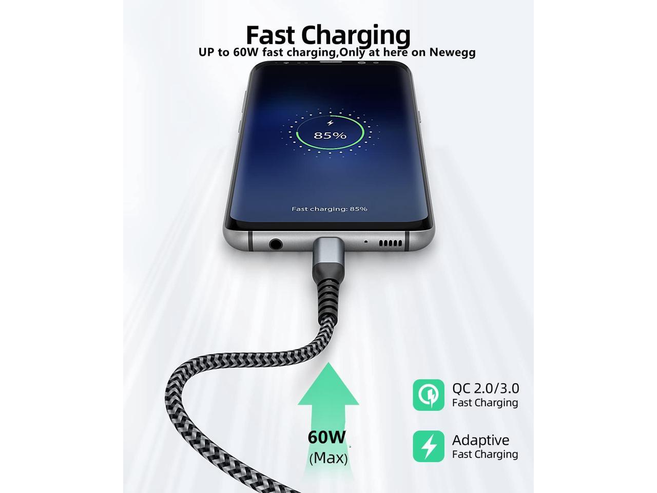 - This is a high performance 3 Pack 6.6ft USB A to USB C Nylon Braided Cable, which Can bear 10000+ bending test and support up to 60W Fast Charging