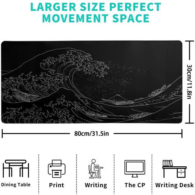 Extra Large Mouse Pad: Our xl mousepad is designed for comfort and productivity. Measuring at 31.5 x 11.8 inches, it provides ample space to accommodate your mouse, keyboard, and other desk essentials. The extra thickness of 3mm not only reduces noise but also ensures a more comfortable experience for your hands.