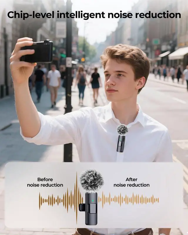 Crystal Clear & Professional Audio Quality: This microphone for iPhone delivers exceptional clarity and richness, featuring advanced noise reduction. As a lapel microphone wireless, it ensures your voice is captured with zero distortion. Its the ideal wireless lavalier microphone for creators.