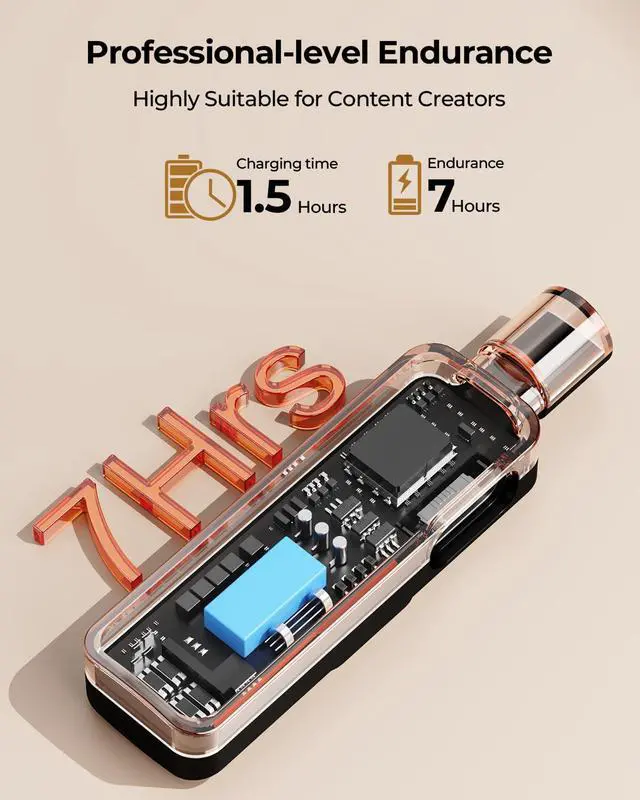 Extended 65FT Range & 7-Hour Battery Life: Record with complete freedom using this professional iPhone microphone. The system maintains a stable connection up to 65 ft. Its long-lasting battery provides 7 hours of continuous operation. This microfonos inalambricos professional ensures high-quality audio capture for interviews and content creation.