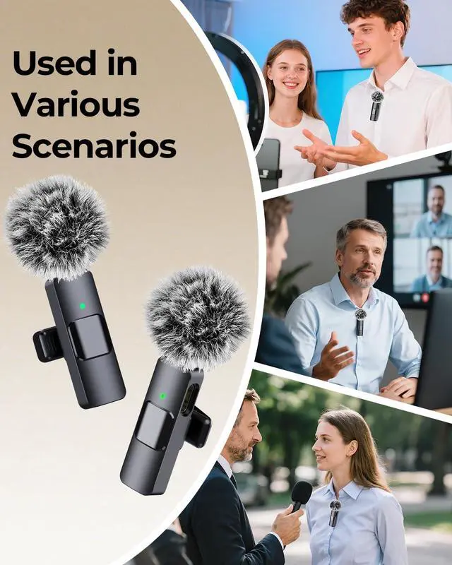 2 x Transmitter with Back Clip 1 x Receiver for iPhone, iPad, Android, Camera 1 x USB A to Type C Charging Cable 1 x User Manual 1 x Exquisite storage bag 2 x Windproof fleece