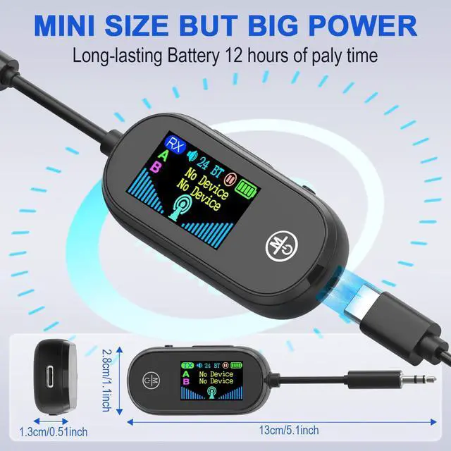 Built for life on the go, the Bluetooth transmitter receiver delivers extended battery life to get you through long flights and daily commutes. It recharges quickly and conveniently via the modern USB-C port, ensuring its always ready when you are.