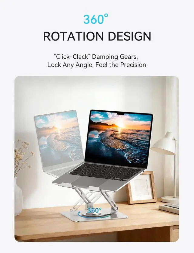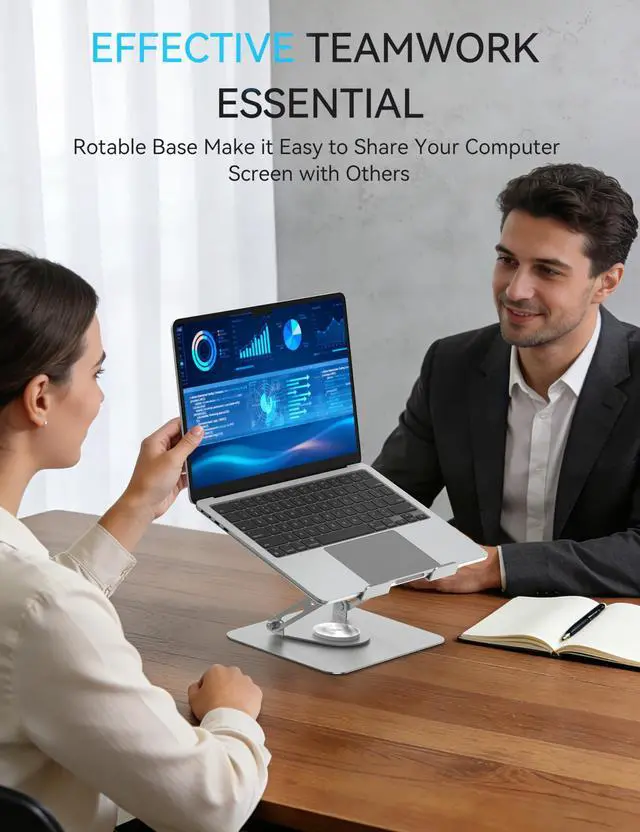 The SOUNDANCE laptop stand JT16R features a 360° rotatable base, making it easy to share your computer screen with others while collaborating on projects.