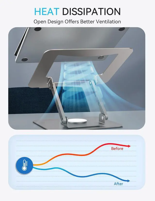 The adjustable height and multi-angle make it more ergonomic, while the eye-level height of your laptop prevents neck pain.