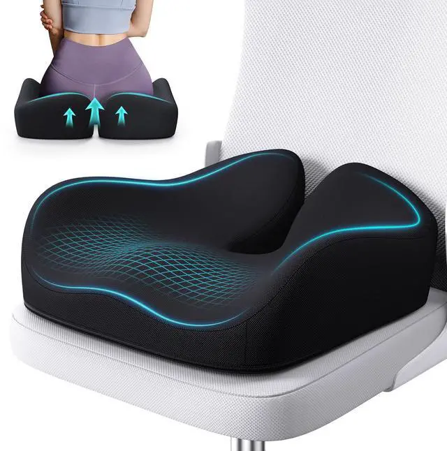 Ergonomic Design for Pain Relief The unique contoured shape reduces pressure on the lower back, hips, and coccyx, offering relief from sciatica and back pain.