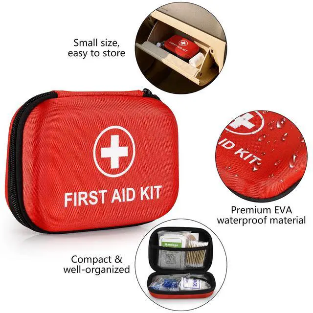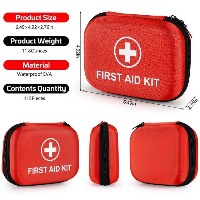 Mini First Aid Kit, 115 Piece Hard-Shell Portable EVA Emergency Medical Kit, Suitable for Home, Travel, Outdoor, Camping, Office, Car, Hiking, and School