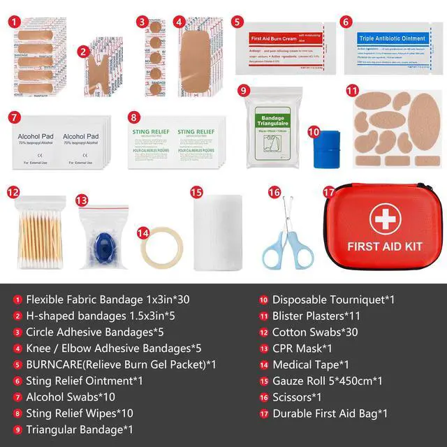 Emergency Essentials: This first aid kit has it all! Our first aid kit contains over 115 professional-grade medical and safety supplies, including triangular bandages, gauze rolls, cotton pads for cleaning wounds, disposable tourniquets, and anti-abrasion patches.emergencies.Compared to other products on the market, our first aid kits contain more and higher-quality items.