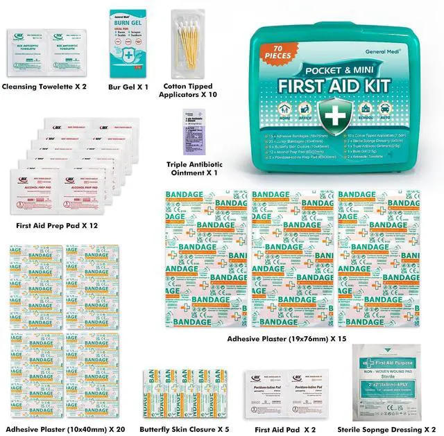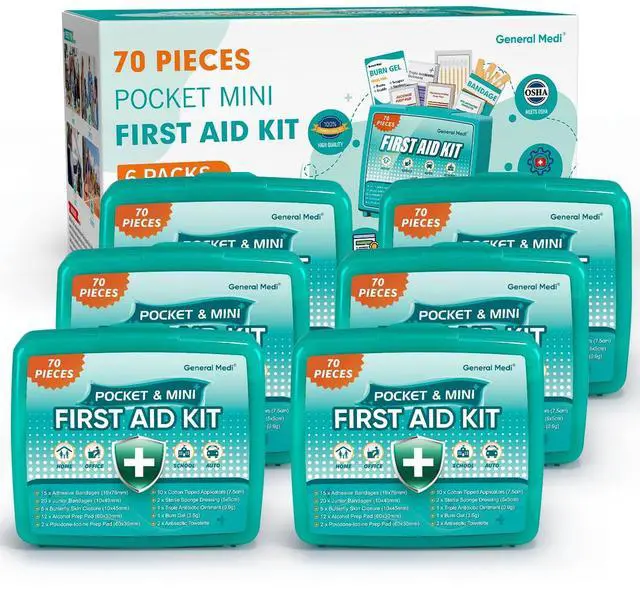 CONTENTS - Each package contains 6 First Aid Kits, each first aid kit packed with 70 Pieces useful and valuable hospital grade first aid supplies - See the product images and the product description below for a full list of contents. We are confident that you will find that there are more and higher quality contents in our kits than any other on the market.