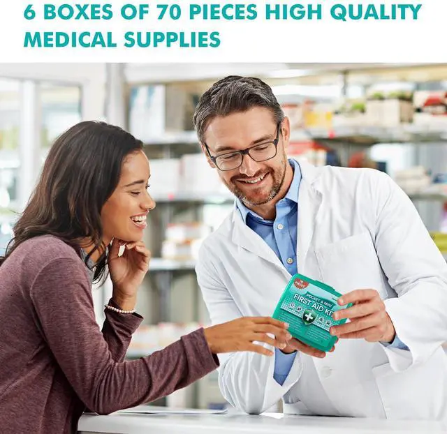 420 Piece First Aid Kit, 6 Individual Boxes of 70 Items Each - Contains Premium Medical Supplies for Travel, Home, Office, Vehicle, Camping, Workplace & Outdoor (420 pcs, 6 Pack)