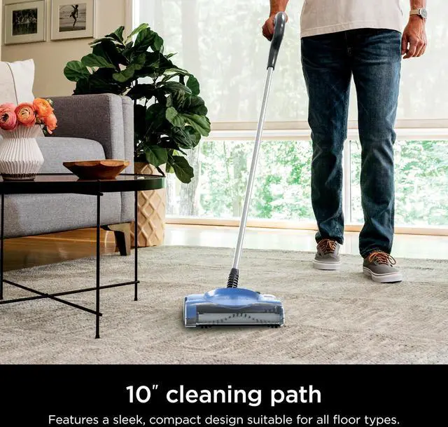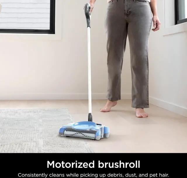 The Shark V2700Z Rechargeable Floor Sweeper delivers quick, powerful cleaning on all floor types with a motorized brushroll that consistently picks up debris, dust, and pet hair. Designed for everyday convenience, it features a compact swivel design for easy navigation around furniture and tight spaces, along with a 10" cleaning path that balances coverage and precision. Its cordless, rechargeable battery lets you clean freely without being tethered to an outlet, while the easy-empty dust cup ensures a mess-free disposal. Lightweight and slim, it fits effortlessly into closets, laundry rooms, or small storage spacesperfect for tackling messes wherever they happen.