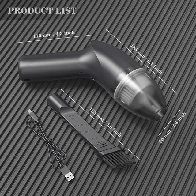 Keyboard Vacuum Cleaner Product Specification: Small dimensions: 2.4 x 2.4 x 8.6 inches Suction: 4.0 Kpa Lithium battery: 2500 mAh Power: 50 W Charging Voltage: DC 5V Charging Current: 1500 mA Net Weight: About 0.76lb (345g) Package Includes 1 x Mini Vacuum Cleaner 1 x 2 in1 Vacuum Nozzles 1 x USB Charging Cable 1 x Storage Bag 1 x Manuals ?If you want to buy a new filter, Please contact us via email so purchase more new filters? Any questions, please feel free to contact us, we will provide you with a satisfactory solution. Precautions: *About power On/Off use: Press the button for 3-4 seconds to start the power; Press the button 1 second to turn off. *For safety, the mini vacuum cleaner cannot be used during charging, switch don't work when charging. *Please charge the vacuum for 3-4 hours before you use it. *Keep your hair, loose clothing, fingers and body parts away from running parts such as the machine air intake and brush strip. Do not point the nozzle, the dust collection rod or the tip at the eyes or ears, or put it in the mouth. *Turn off the hand vacuum cleaner before removal or installation of the filter properly.Before reuse, check the filter for proper installation or damage. *Forbid to inhale sharp objects, burning or smoky objects (such as glass, carbon fire, cigarettes, or unextinguished ash).
