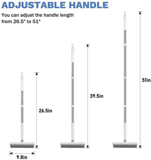 ADJUSTABLE HANDLE: This tile brush for cleaning grout comes with a 3-section detachable metal pole, and the length can be adjusted from 26.5 inches to 51 inches. It is convenient for every family member to use, and there is no need to bend or squat.