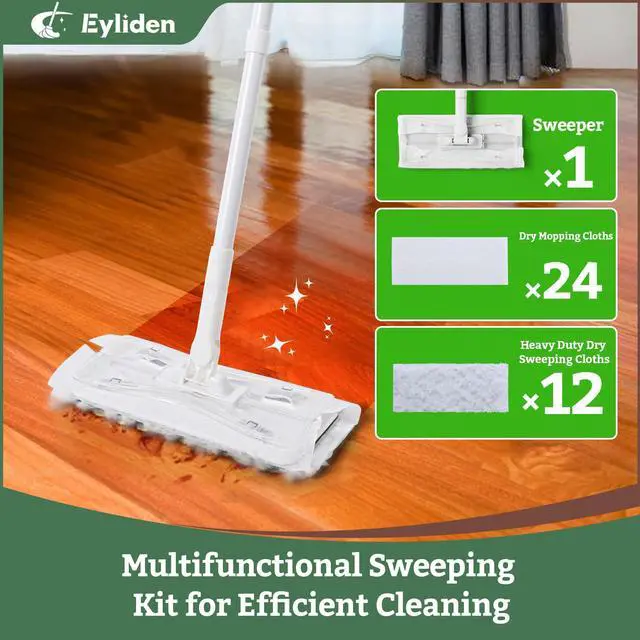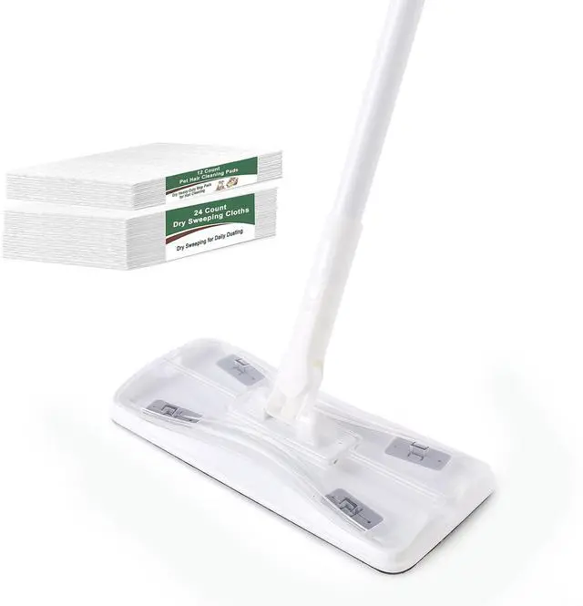 Dust Mop, Sweeping & Mopping Kit with 58" Extended Long Handle, 36 Disposable Dry Cloths, Multi Surface Sweeper Mops for Hardwood, Tile, and Vinyl Floor Cleaning, Iron Handle, White
