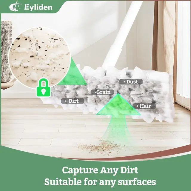 36 DISPOSABLE PADS + UNIVERSAL FIT: Weekly use equals 36 weeks of cleaning; includes 12 heavy-duty pet hair pads and 24 dry cloths; universal 10 x 4.3 inch head fits most major brand padsuse whatever you already own