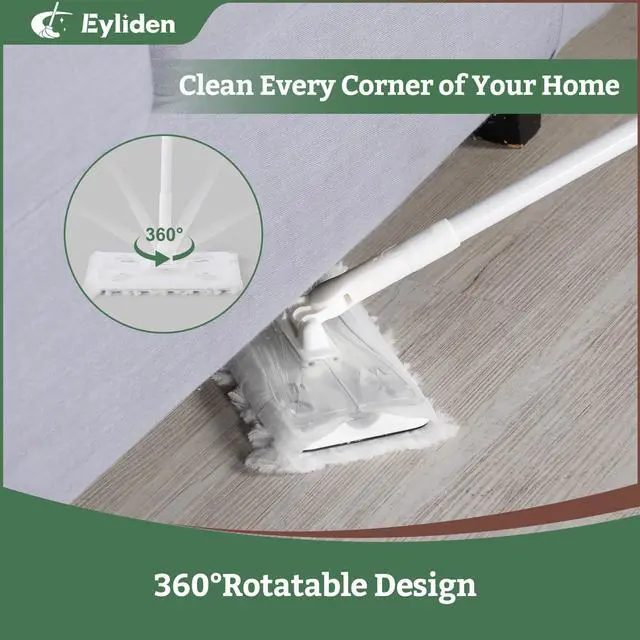 SAFE FOR ALL FLOOR TYPES: Cleans hardwood, tile, laminate, vinyl, and stone without scratches or streaks; 360° swivel head reaches corners and tight spaces; also works on furniture, blinds, and windowsills