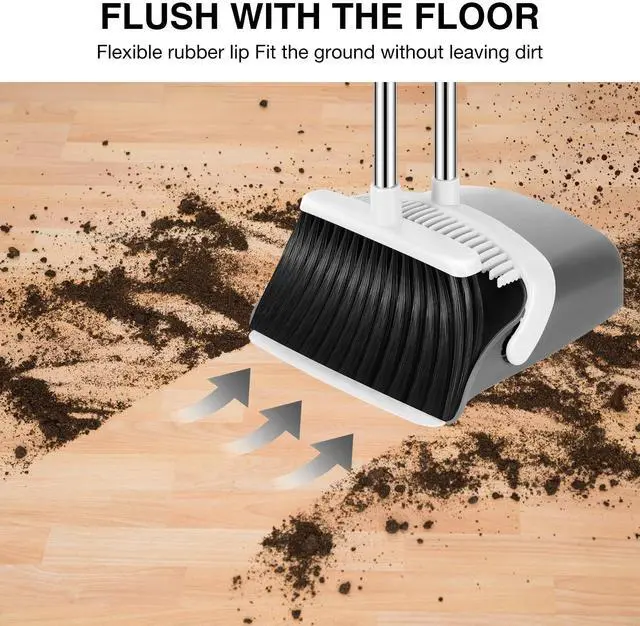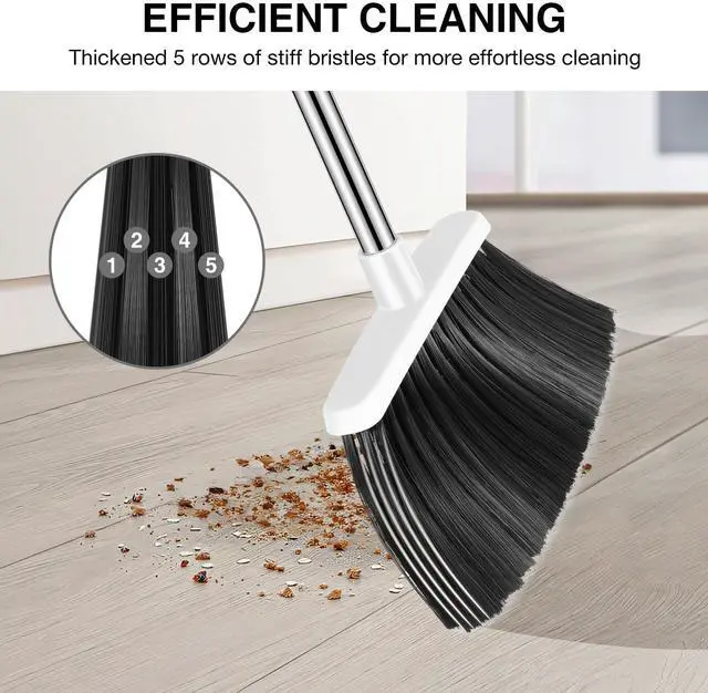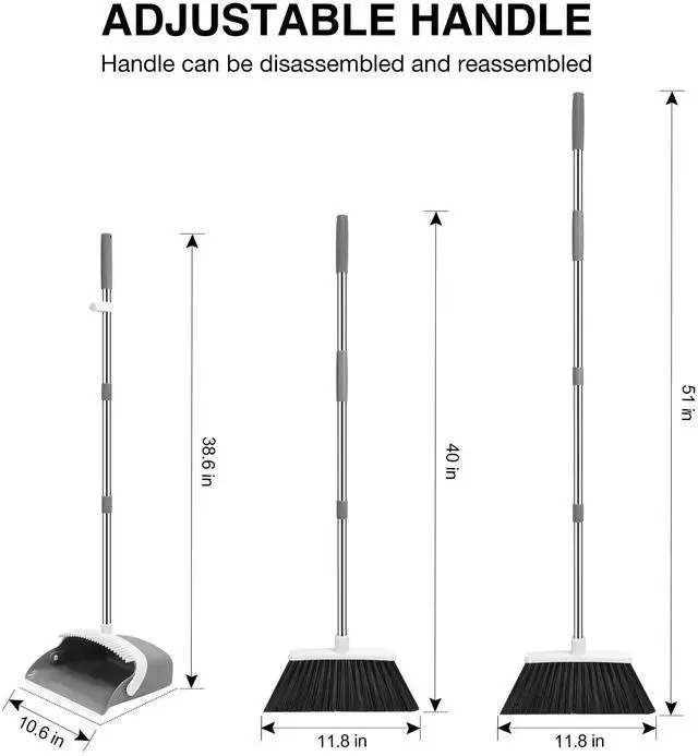Long handle broom and dustpan: upgrade 52" long broom handle allows you to stand upright for comfortable sweeping instead of bending over.