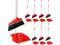 Set of 8 Broom and Dustpan Set Long Handle Broom with Upright Standing Dustpan Broom with Dustpan Combo Set Dust Pan with Long Handle for Lobby Kitchen Office Floor Outdoor Cleaning (Red)