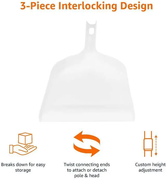 Featuring a convenient, space-saving design, the Basics broom features three locking poles that allow you to interchange the height of the broom handle for a variety of jobs, or simply break down for compact storage between uses. Easily twist together the connecting ends until the pole is secure, and attach the head in the same manner.