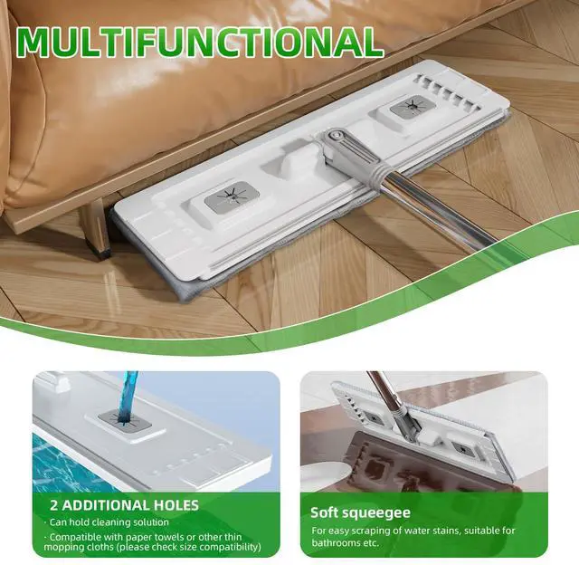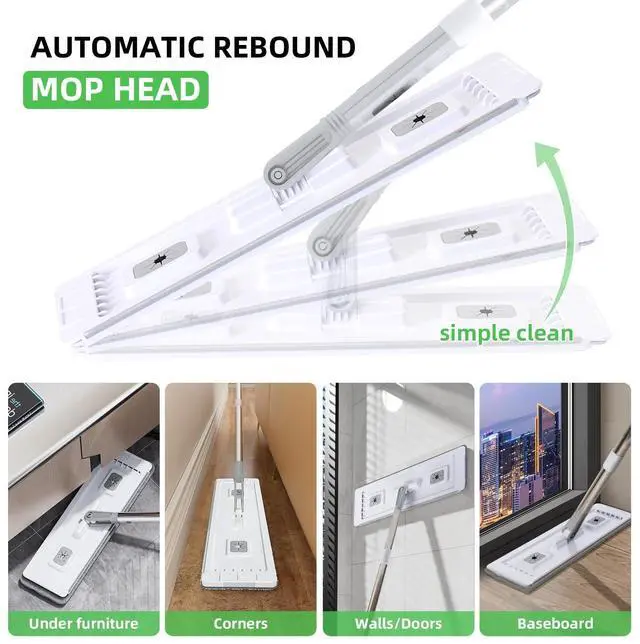 Reach Corners: The flat mop with bucket features a flexible 360° rotating rectangular head for better corner cleaning. It reaches under furniture, along edges, and into tight gaps, making it a great cleaning mop solution for deep floor care in kitchens, bathrooms, and homes.