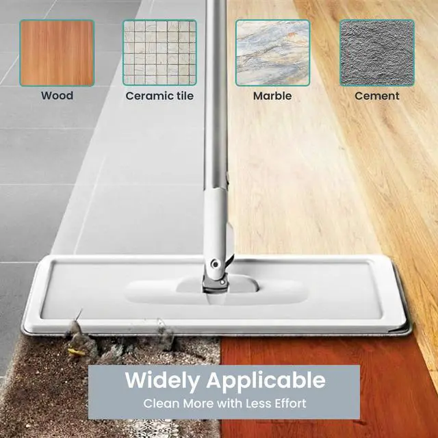 360° Rotating Mop Head Effortlessly cleans corners, edges, under furniture, and vertical surfaces.