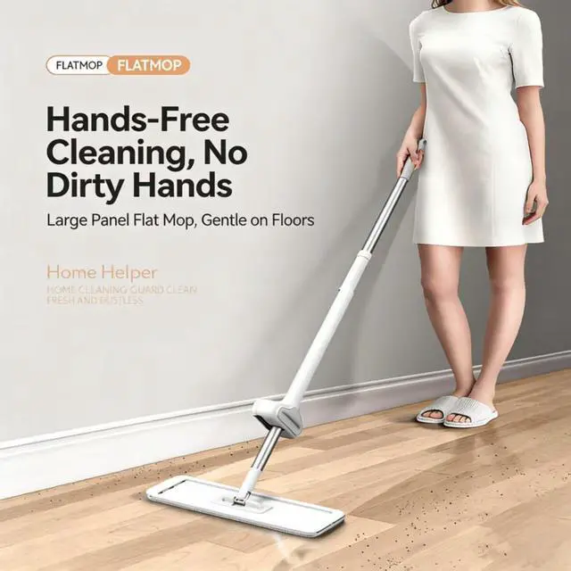 This self wringing flat mop is your ultimate all-around cleaning companion. Designed as a versatile microfiber flat mop, it excels in both dry dusting and wet mopping, making it the perfect solution for cleaning hard-to-reach areas like windows and ceilings. Specifically engineered to care for your home, this innovative wood floor mop ensures scratch-free cleaning on all hard surfaces, while its self-wringing feature eliminates the need for bending—allowing you to achieve a spotless clean with ease, upright and effortless.