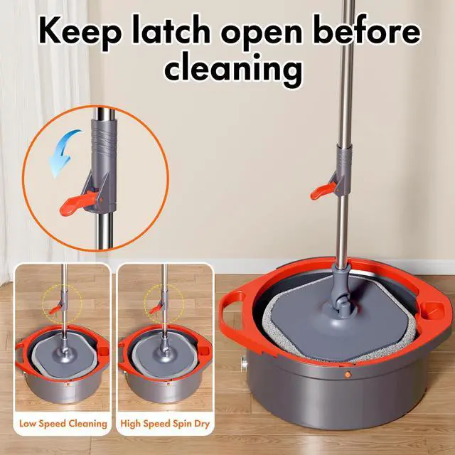 DIRTY AND CLEAN WATER SEPARATION: The spin mop and bucket Set adopt a dual bucket design to separate clean water and dirty water. The clear water flows out from the scraping teeth in one direction, and the dirty sewage from the mop with bucket enters the outer bucket without being carried out by the self cleaning mop to contact the ground, making the floor cleaner during cleaning. The inner bucket containing clean water cannot be disassembled.