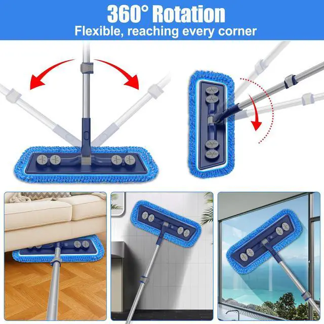 360° Rotatable Mop HeadThe flexible mop head can help you clean every corner and gap easily. This floor mop is sutiable for cleaning walls, windows, under the sofa, in the corners and under the table, keep your home tidy any time.