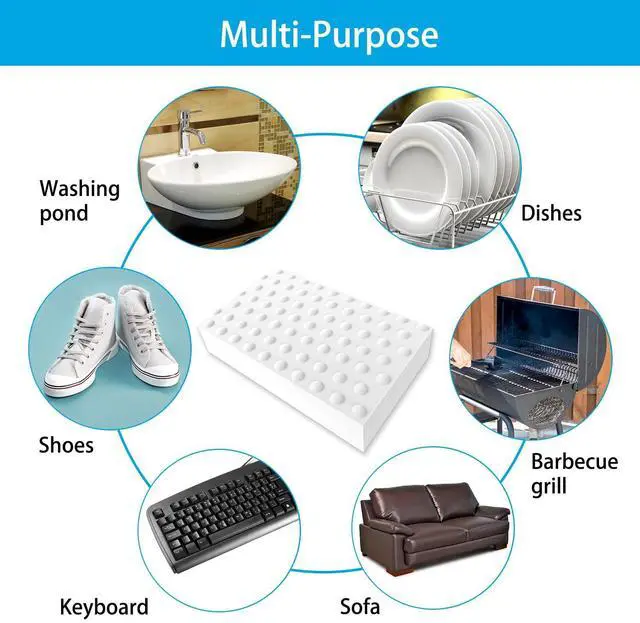Multi-Purpose Cleaner: These cleaing sponges effortlessly cut through grease, soap scum and permanent marks. It can be used in any place such as kitchen, bathroom, doors, floors, walls, dishes, shower, toilet, tub, sink, shoes, car, wall pencil scratches, and more