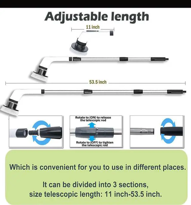 Size telescopic length: 11 inch -53.5 inch, Retractable handle, removable, portable and lightweight.