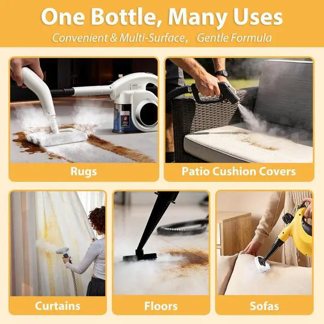 It features a low-foam, neutral formula that resists clogging, leaves no residue, and won’t cause stickiness—ideal for steam mop cleaner and portable steam cleaner.