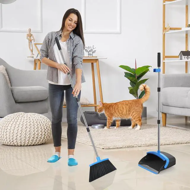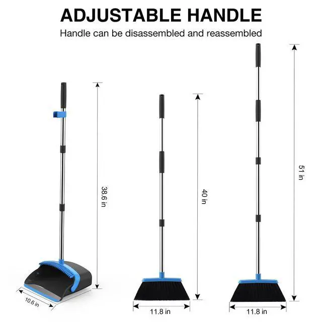 Long handle broom and dustpan: upgrade 52" long broom handle allows you to