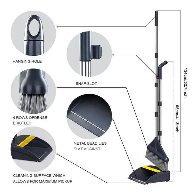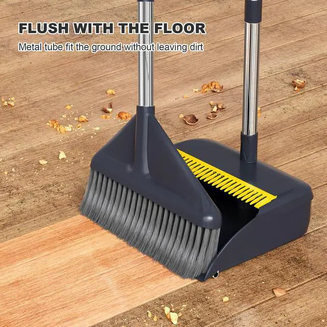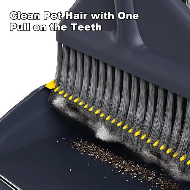 Built-in Dustpan Teeth: Built in comb/Teeth for easy to Clean Broom into Dustpan , Clean Pet Hair and Human Hair with one Pull on the Teeth. The dustpan has a metal bead around the edge to ensure it sits flush with the floor, and the teeth make cleaning easy.