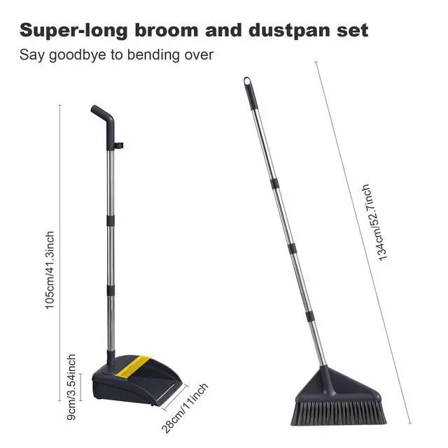 Adjustable Pole Design: The optional extension pole makes the broom length from 38.97 to 52.36 inches, People can choose the appropriate length according to their height. And long handle allow you to Stand upright,very friendly for back discomfort