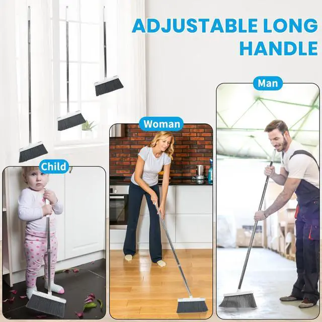 Ergonomic Angle Broom- The indoor broom is slightly angled for easy floor cleaning, 50 broom is long enough for kids and adults, the dustpan and brush set is also friendly for senior and disables